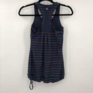 Athleta Navy Blue Multicolor Stripe Side Ties Drawstring Racerback Built In Bra Tinker Athletic Tank Top