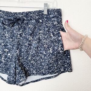 Athleta Size XL Navy Blue Pull-On Elastic Waist Printed Baja Shorts Abstract