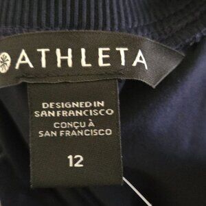 Athleta Navy Double Waist Band High Rise Wide Leg Pants Pockets Size 12
