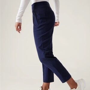 Navy hybrid pants by Athleta. Ideal for active lifestyles.