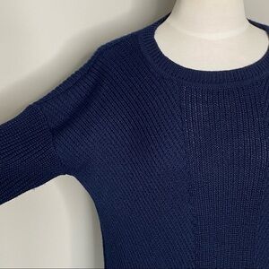 Athleta Navy Split Hem High-low Merino Wool Blend Tunic Pullover Sweater, Small
