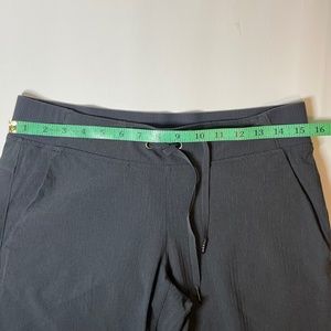 Athleta Midtown Mid Rise Trouser Pant Stretchy Cinch Raisin Gray Stripe 4 Tall