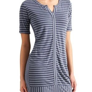 Athleta Navy and Blue Striped Notched Neck Dress- Missing Size Tag, Fits Like a Medium/Large- in Preowned Condition