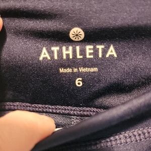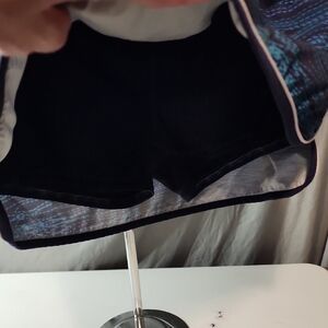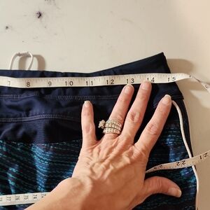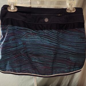 Stylish Athleta skort. Navy and teal pattern. Comfortable and versatile.