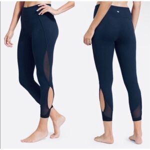 Athleta Navy Blue Mesh Cutout Salutation 7/8 Yoga Leggings Size XXS