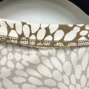 Tons of stretch and ruching for a flattering fit. Tag has been removed, but measures as a size extra small regular. Style #819754. No holes or odors. There is a slight discoloration on one of the armpits (see pics). No other stains.