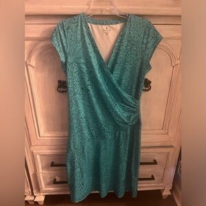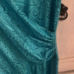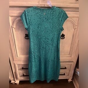Athleta Nectar Faux Wrap Turquoise Paisley Printed Ruched Dress Athleisure