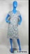 Flowy fast drying polyester spandex knit fabric featuring turquoise and navy blue ornate vine pattern on white background