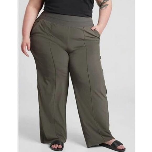 Athleta Nolita Wide Leg Pull-On Pants, Mountain Olive Green, Plus Size 26W