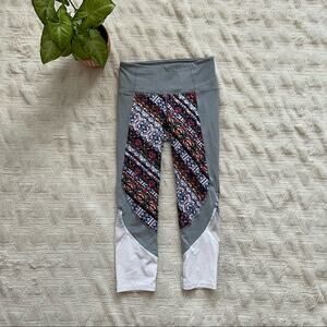 In good preowned condition. Colorful print with white mesh panels. Capri length.