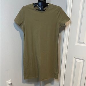 Casual olive green t-shirt dress with short sleeves. Perfect for everyday wear. Size Medium