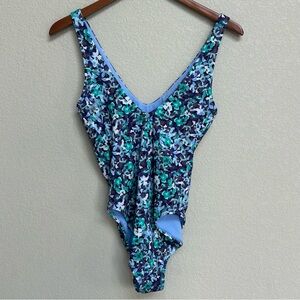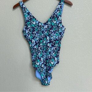 Athleta One-Piece Swimsuit Small Blue Green Purple Floral Scoop Back Swimwear