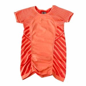 Womens Athleta Orange Jet Stripe Fastest Track Tee
