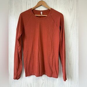 Athleta Orange Shimmer Long Sleeved Active Shirt Size L LNC