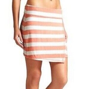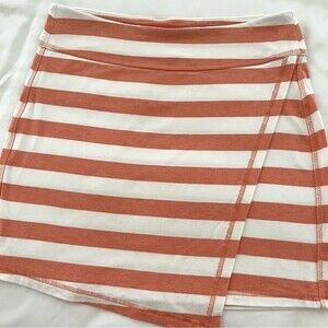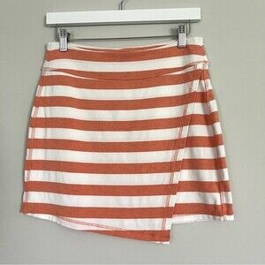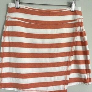 Athleta Orange and White Ribbon Striped Faux Wrap Skirt, Size S