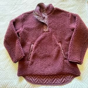Athleta Outerwear Cozy Sherpa Half Snap Pullover Sweater Deep Burgundy Medium