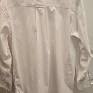 Athleta Oversize White Blouse. Long Sleeve Button Cuff. Longer Length. Zipper side pocket. Machine Wash & dry.