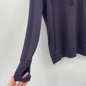 Stay cozy and stylish with this Athleta hooded sweatshirt tunic in a beautiful purple hue. Features a comfy oversized fit, thumb holes, and a longer tunic length that pairs perfectly with leggings or jeans.