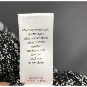 The size tag is missing from this sweater. Sizing was determined based on the measurements provided in the photos. Please check these measurements to assure this top will be the right fit for you. It is meant to be oversized so it could fit a range of sizes.