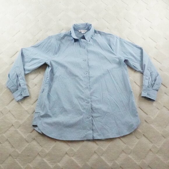 Athleta Oversized Poplin Top Womens XXS Blue Preppy Casual