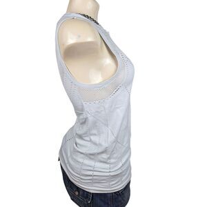 Athleta Oxygen Tank Top Sz M Eyelet Cutout Mesh Gray Workout Yoga Athleisure