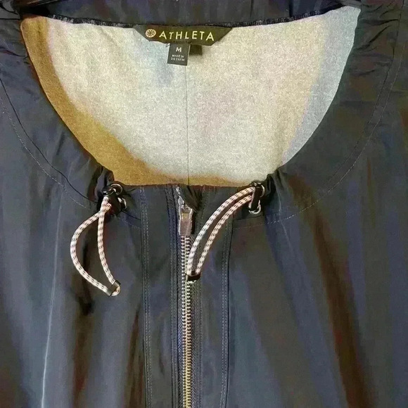 NWOT - Athleta navy water proof jacket; grey fleece lined; front zipper; front pockets; toggles to customize fit! Never worn. New without tags. Hits at the waist.