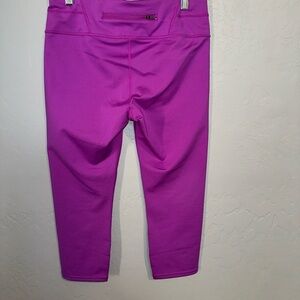 Vibrant purple capri leggings. Perfect for workouts or casual wear.