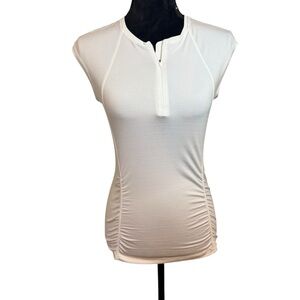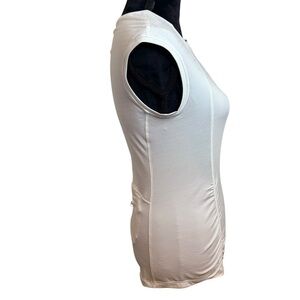 Experience the perfect blend of style and comfort with this white tank top from Athleta, featuring a fitted silhouette and elegant ruched detailing. Its sleeveless design and smooth fabric make it a versatile addition to any wardrobe, ideal for layering or wearing on its own.