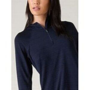 Athleta Pacifica Shores Coverup in Navy Blue, Size Medium. Label marked through to prevent store return. Quarter Zip, With Pockets & Hood.