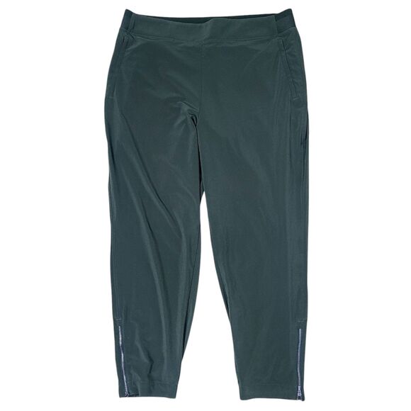 Athleta Pants 16 Olive Green Stretch Pull-On Ankle-Zip Pockets Fitness Travel