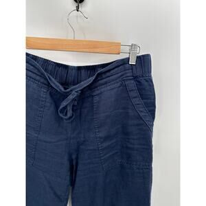 Athleta Pants Women 12 Navy Blue 100% Linen Drawstring Elastic Waist Casual