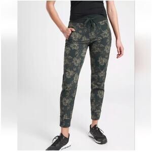 Athleta Pants Women 2 Green Floral Print Trekkie North Jogger Active Travel Hike