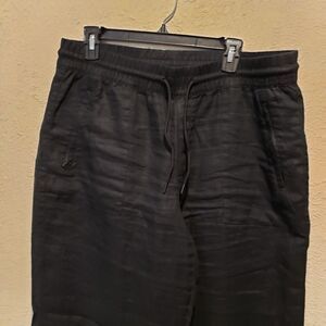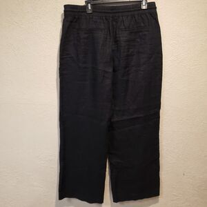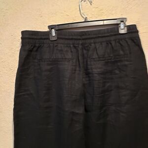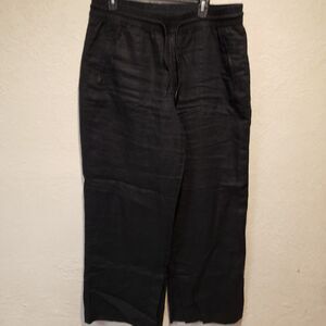 Athleta Pants Women Size L Black 100% Linen Wide Leg Drawstring Breathable