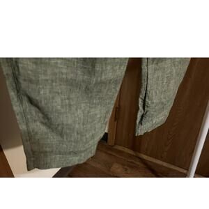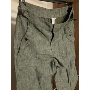 Athleta Pants Womens 10 Cropped Voyager 100% Linen Aspen Olive Green Indie