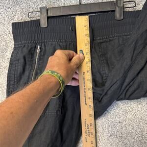 Athleta Pants Womens 4P Black Linen Jogger Elastic Waist Zip Pockets Cuffed