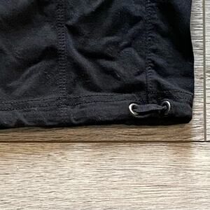 Size small. Cinched bottoms. Zippered pockets in the front. Has pockets in the back. In good condition.
