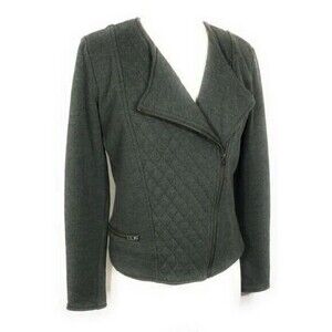 * 1 Athleta Belvedere Moto Knit Jacket XS Olive Green Athleisure Travel Quilted