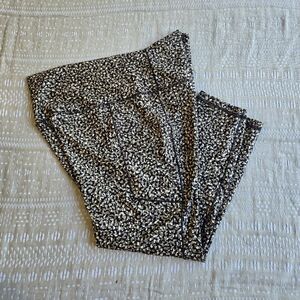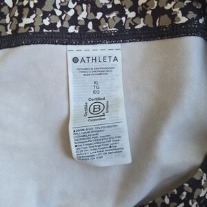 Athleta cropped leggings with a stylish green, brown, and purple design. Ideal for workouts or casual wear. Pockets on both legs. perfect condition!