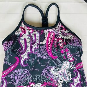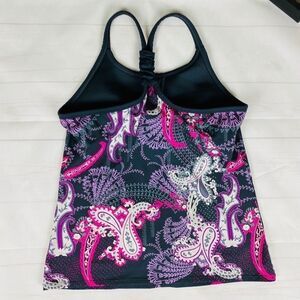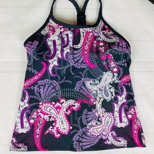 Athleta Pavitra Gray Pink Paisley Built In Bra Tank Top Size Medium. Really cute ruching detail on back straps. Like New Condition, Smoke-pet Free Home.