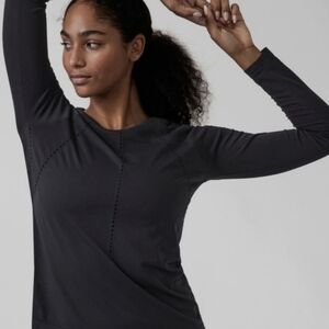 Athleta Perforated Long Sleeve Running Stretchy Athleasure Athletic tee Sz M