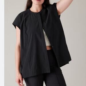 Athleta Performance Poplin Popover Button Up High Neck Hidden Pocket Top Sz: XL