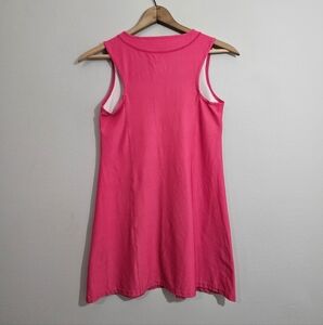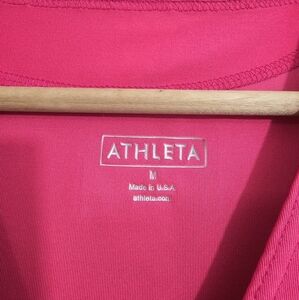 Pre-owned Athleta dress, size medium. It's made of a polyester/elastane blend fabric with a