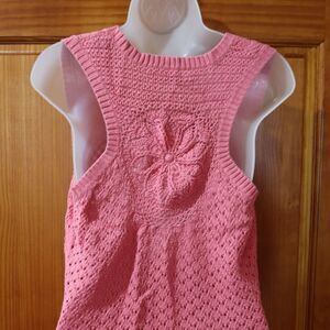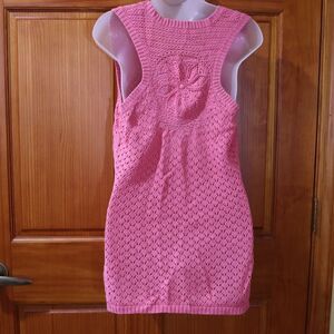 Athleta Pink Crochet Tank Top Mandalla Back Vneck Large