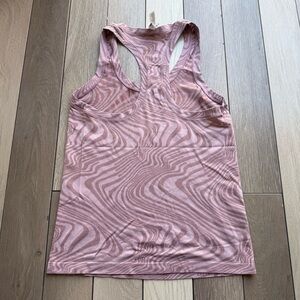 This Athleta tank top features a fitted design in a vibrant pink hue, perfect for athletic activities. The sleeveless style and performance fabric ensure comfort and ease of movement. Its dynamic pattern adds a touch of flair to your workout wardrobe.