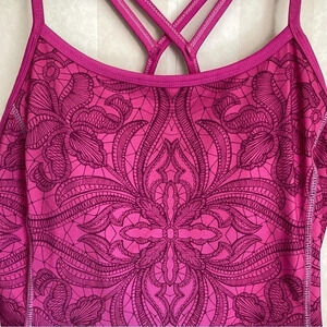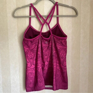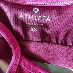 Athleta tank size XS. Super cute pink floral tank. Built in bra and cute strappy back. Excellent condition, except Athleta logo is coming off a bit (see pic). Smoke free home.