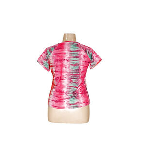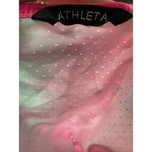 Stay active in this stylish Athleta t-shirt. Made with comfortable polyester material, perfect for any workout. Available in women's size M.