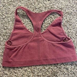 This Athleta sports bra in a vibrant pink hue features a ribbed texture and a supportive racerback design, offering both comfort and style for your workouts. The stretchy material ensures a snug fit, while the reinforced band provides added support. Ideal for both athletic activities and casual wear, this piece combines functionality with a sleek aesthetic.