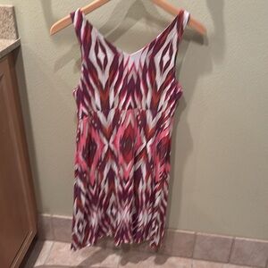 Vibrant top with a dynamic pink and white design. Ideal for active wear.