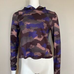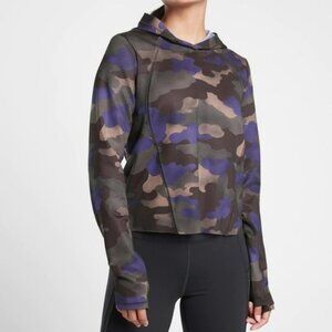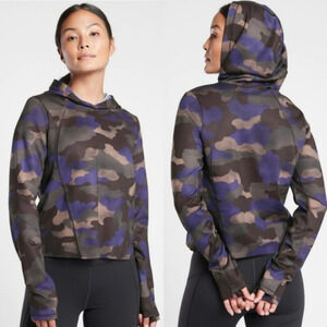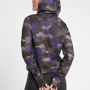 Athleta Pinnacle Hoodie in Mantra Print Purple Brown Sweatshirt Size XS