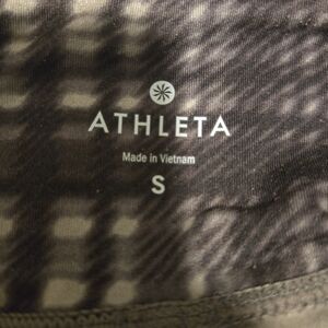 Athleta capri leggings in a plaid print with black and brown tones. Size small.
